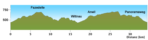 Nach dem Start bleiben knapp 2km, um sich auf einer mässigen Steigung warm zu fahren. Danach geht es stufenweise dem ersten Bergpreis, der 'Fazedelle' entgegen. Kurz vor dem Gipfel treibt ein fast überhängender Felsriegel den Puls weit in den roten Bereich. Ein kurzes Stück folgt man nun auf Waldstrassen der Krete, bevor es in die steile Homberg Abfahrt geht. Auf ein flacheres Zwischenstück durch das Naturreservat am Homberg und die Rebberge oberhalb Wittnaus folgt neu die Überquerung der Hauptstrasse und damit der Kantonswechsel. Ein langgezogener, immer steiler werdender Aufstieg führt nach Anwil. Etwas weniger intensiv, aber dennoch stetig steigend führt die Strecke zurück nach Wegenstetten zum höchsten Punkt der Strecke, der Ruebholden. Dort folgt nun ein anspruchsvoller Downhill, bevor über ein interessantes Auf- und Ab das Ziel in Wegenstetten erreicht wird.